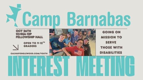 Teens, are you interested in being a missionary for one week this summer to serve those with disabilities? Camp Barnabas is a ministry in Missouri dedicated to providing a unique Christian summer camp experience to individuals with special needs, their siblings, and youth from across the United States. It’s a summer full of fishing, canoeing, archery, ziplining, swimming, mini-golf, and so much more. Missionaries play a vital role meeting the Campers' physical, emotional, and spiritual needs for a week. Learn more about serving with Calvary as missionaries at Camp Barnabas by signing up HERE!